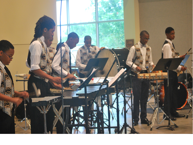 The SUAVE` Percussion Ensemble under the direction of Samuel Dinkins, III was organized in the fall of 1990. The Ensemble features students, ages 10- 18 years old, of the DDC School of Music, a division of the Dinky Drum Company, LLC. The students perform music from the African & Afro-Caribbean experience, Classical Percussion Ensemble literature and Contemporary music. The Ensemble has performed at a variety of events since its inception. They include: The Community Music Center of Houston’s annual Fall and Spring recitals, The Windsor Village U.M.C. Boy’s Right’s of Passage Ceremonies, The Brentwood Baptist Church Youth Black History Program, The Iri-Ji Annual Nigerian Festival, The Children’s Museum of Houston, The S.H.A.P.E. Community Center, the Houston Children’s Festival and a host of other events in the Greater Houston Metropolitan area. In 1995 The SUAVE` Percussion Ensemble was one of the featured youth group’s on Channel 13's weekly television show "Crossroads", Hosted by Regina Hall. This episode was in celebration of the Juneteenth Holiday. The Ensemble is a featured performer in the DDC School of Music Annual Spring Recitals.